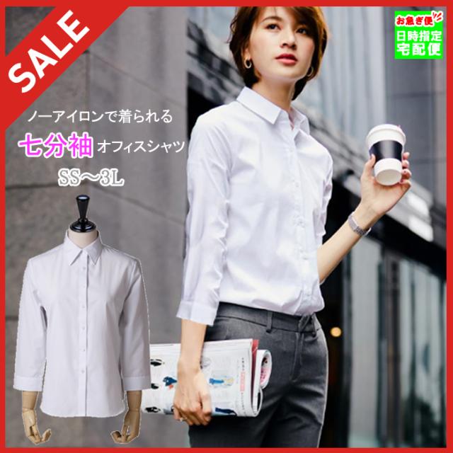 【受取日時指定OK】レディース トップス シャツ ブラウス ビジネス オフィス Yシャツ フォーマル スーツ リクルート 就活 OL 事務服 無地 七分袖 7分袖 定番 ホワイト 白 S M L LL 3L 在宅 リモートワーク