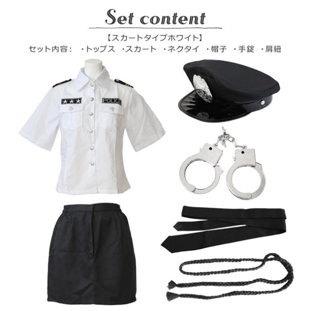 | セット内容 | 【スカートタイプ】 セット内容: ・トップス ・スカート ・ネクタイ ・帽子 ・手錠 ・肩紐 【ワンピースタイプ】 セット内容: ・ワンピース1着 ・帽子 ・手錠 ・ベルト |