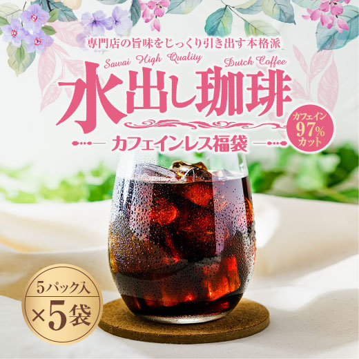 【澤井珈琲】送料無料 コーヒー専門店の水出し珈琲パック カフェインレス 5パック入り×5袋(コーヒーパック/アイスコーヒー/水出しコーヒー/コールドブリュー) デカフェ