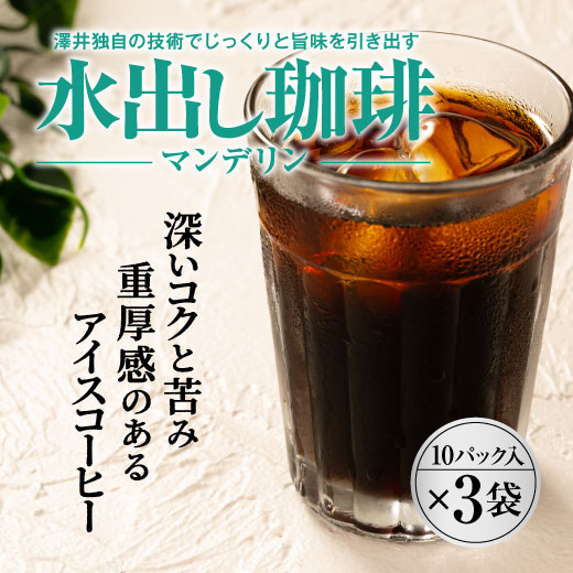 【澤井珈琲】送料無料 コーヒー専門店の 水出し珈琲パック マンデリン 10パック入り×3袋(コーヒーパック/アイスコーヒー/水出しコーヒー/コールドブリュー)