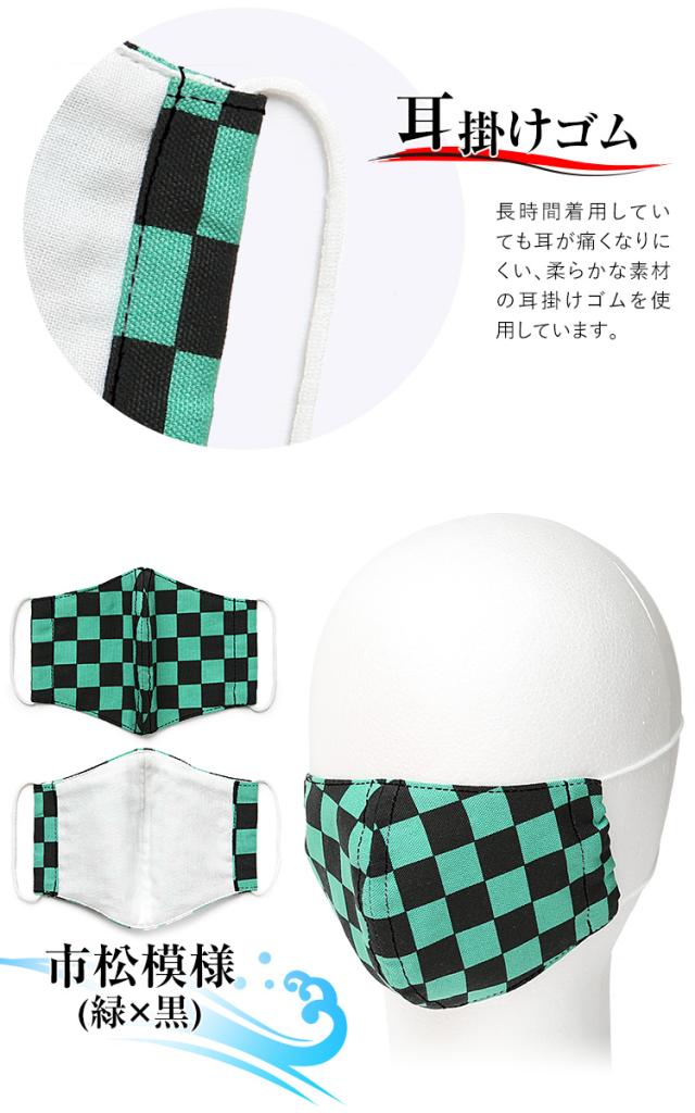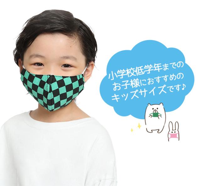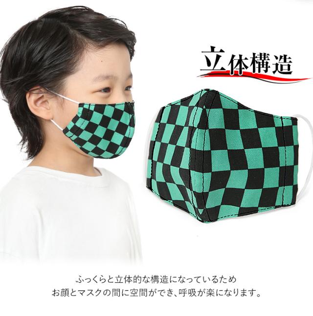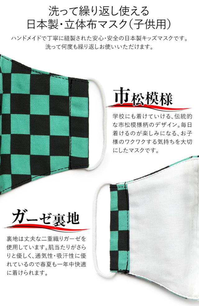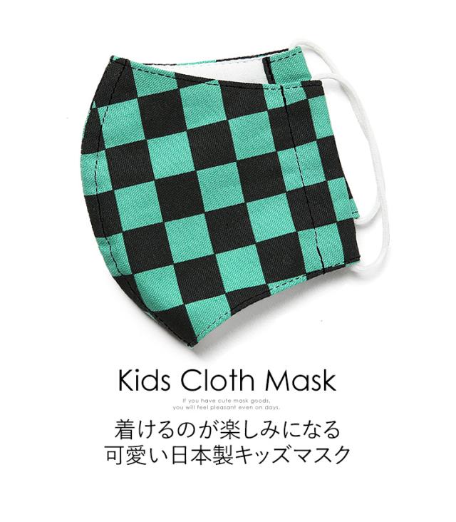 マスク 子供用 日本製 洗える 鬼滅の刃 きめつのやいば 鬼滅 炭治郎 布製 布マスク ガーゼ 在庫あり 夏 通気性 軽量 立体 子ども用 こども キッズ おしゃれ かわいい 大きめ 小さめ 水洗い可能 痛くない 和柄 生地 市松模様 グリーン チェック MA-S-03 ゆうパケット対応
