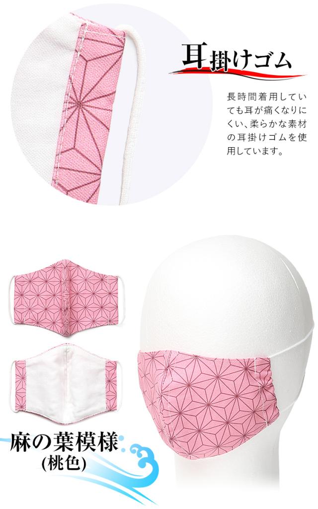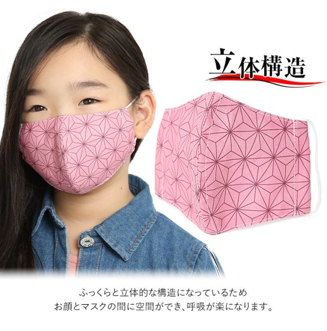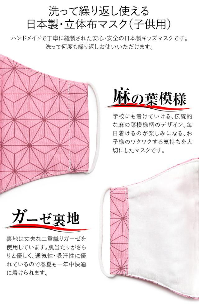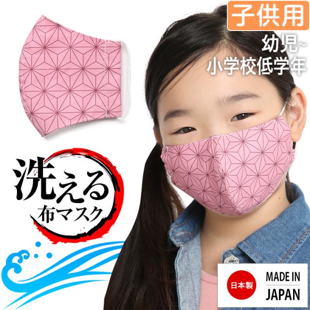 マスク 子供用 日本製 洗える 鬼滅の刃 きめつのやいば 鬼滅 禰豆子 ねづこ 布製 布マスク ガーゼ 在庫あり 夏 通気性 軽量 立体 子ども用 こども キッズ おしゃれ かわいい 大きめ 小さめ 水洗い可能 痛くない 和柄 生地 麻の葉模様 ピンク MA-S-04 ゆうパケット対応