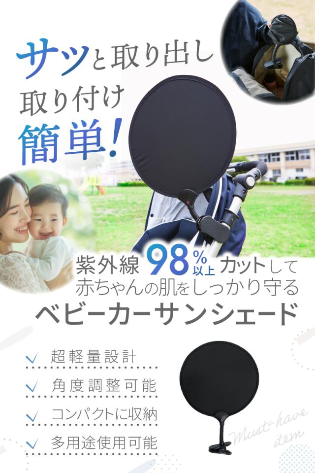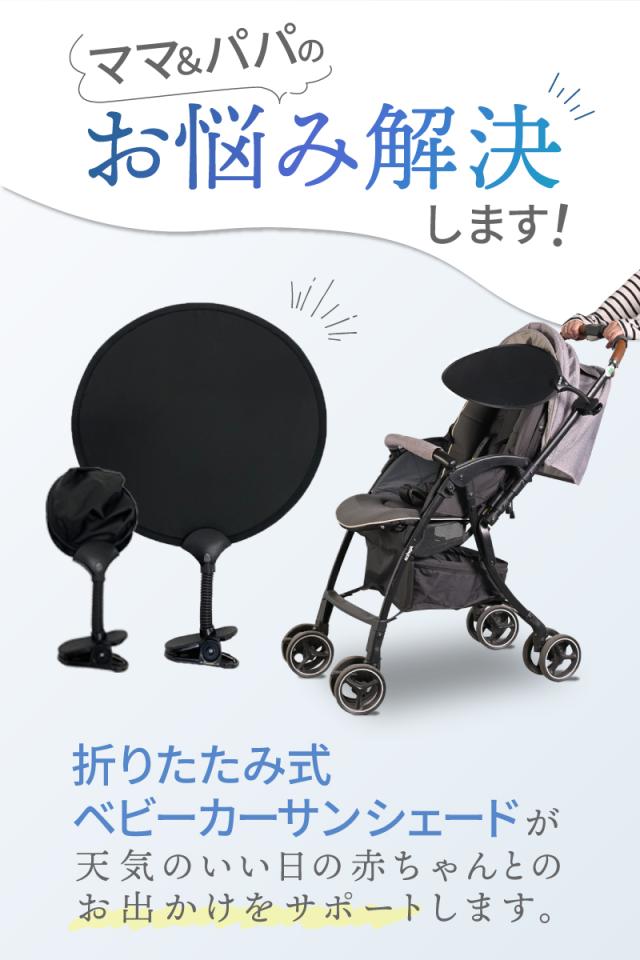 ベビーカー サンシェード 日よけ 折りたたみ 日除け UVカット 暑さ対策 紫外線対策 後付け 取り付け簡単 A型 B型 バギー シェード 日よけカバー ベビー用品 グッズ 赤ちゃん 便利 シンプル 黒 コンパクト 軽量