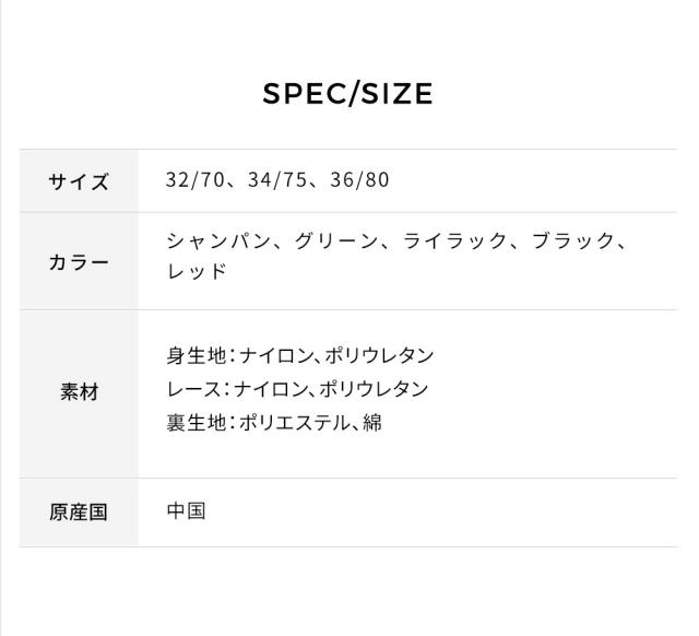 32/70、34/75、36/80 (アンダー:65〜80、カップ:A〜Cまで)