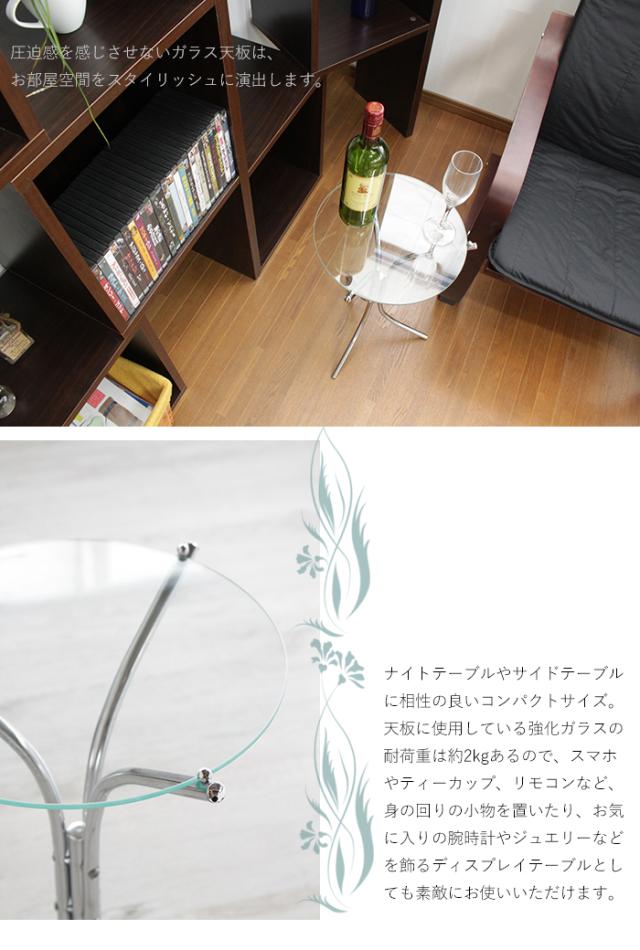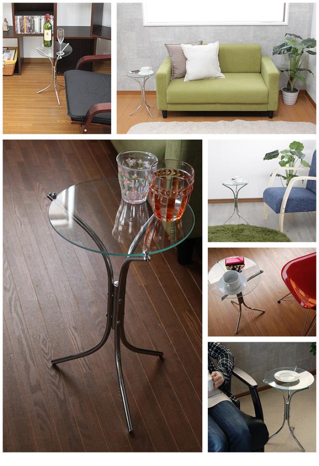| 涼しげなガラス天板がかわいい、ガラステーブルです。 植物を置いたりベッド脇に置いたり、様々な場所で使える商品です。 | ||||||||||||||
