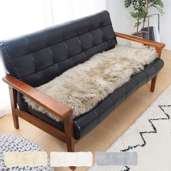 シートクッション 38×120 ムートン クッション 羊毛皮 天然 椅子 ( ムートンクッション 天然ムートン ロングクッション もこもこ 毛 羊毛 毛皮 ソファクッション 冬用クッション 暖かい インテリア 車内 ソファ 120cm )
