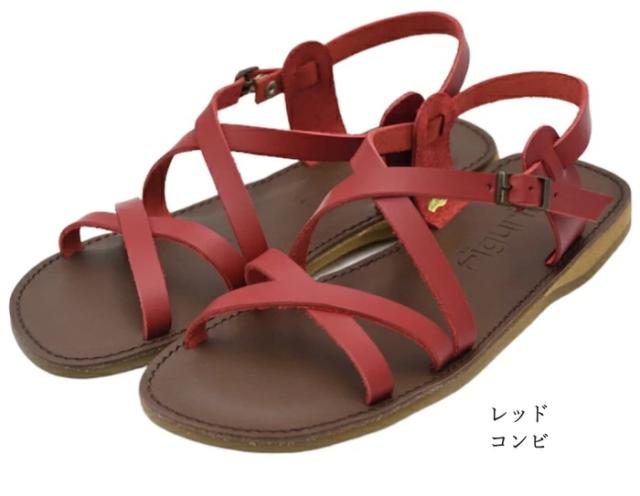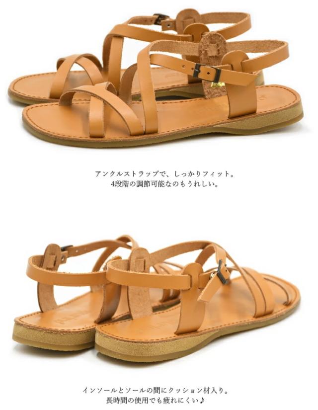 日本製 本革 サンダル レディース 歩きやすい ぺたんこ ローヒール 2205 クロスベルト ストラップ ナチュラル サンダル レザー エスニックサンダル 大人