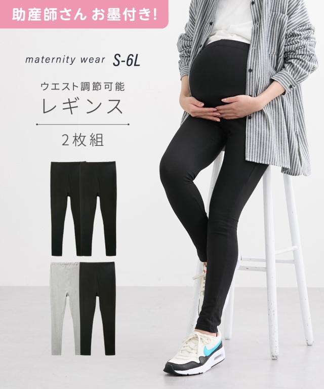 パンツ マタニティ ママ 産前 綿混 10分丈 レギンス 2枚組 ウエスト調節可能 4L/5L/6L