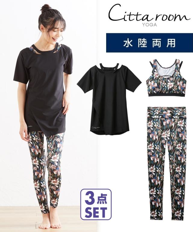 ヨガウェア citta room 水陸両用 チュニック付 3点セット ピンク/ブラック 4L/5L/6L/8L/10L 大きいサイズ レディース ニッセン