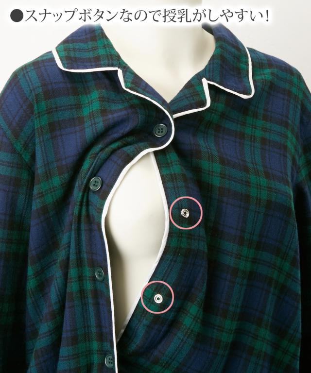 授乳服 パジャマ マタニティ ママ 産前 産後 袖 ロールアップ ビエラ起毛 前開き M/L