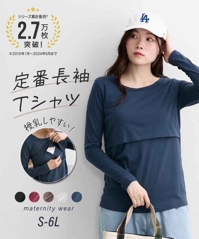 ママ 産前 産後 授乳服 授乳しやすい 丸首 長袖 無地 Tシャツ 4L/5L/6L