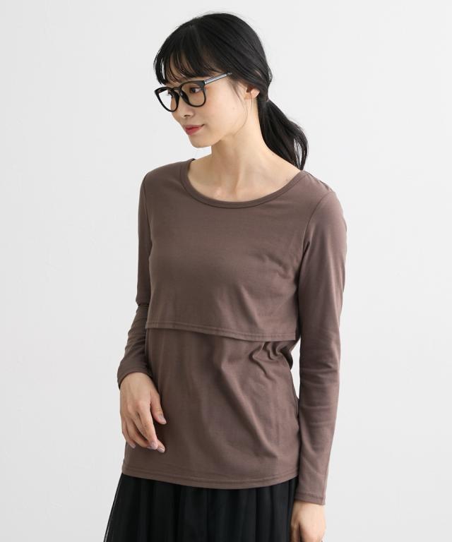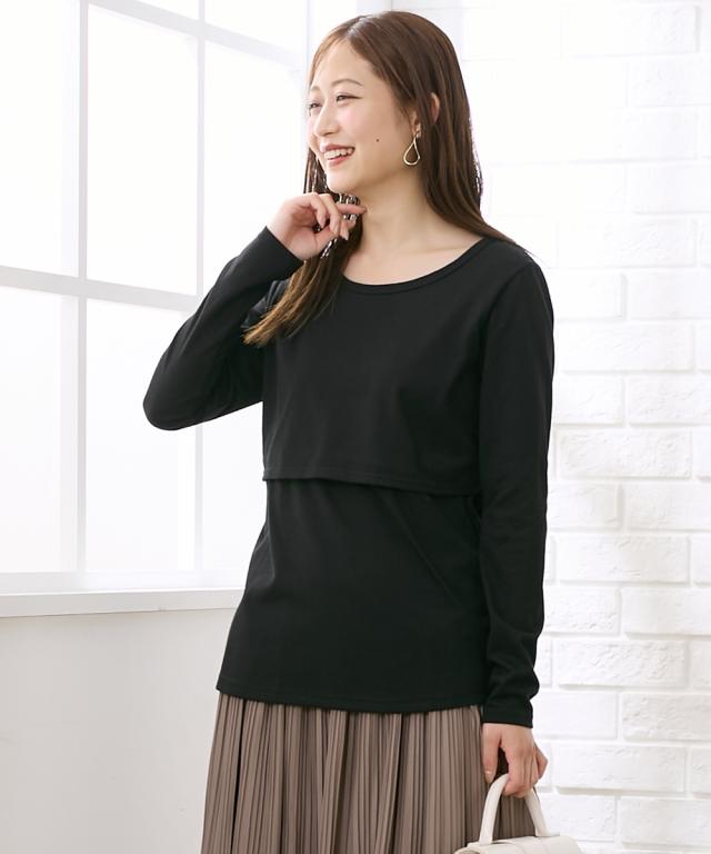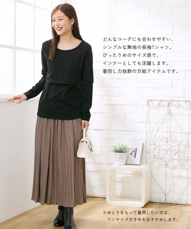 ママ 産前 産後 授乳服 授乳しやすい 丸首 長袖 無地 Tシャツ 4L/5L/6L ニッセン nissen