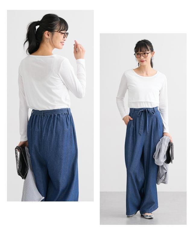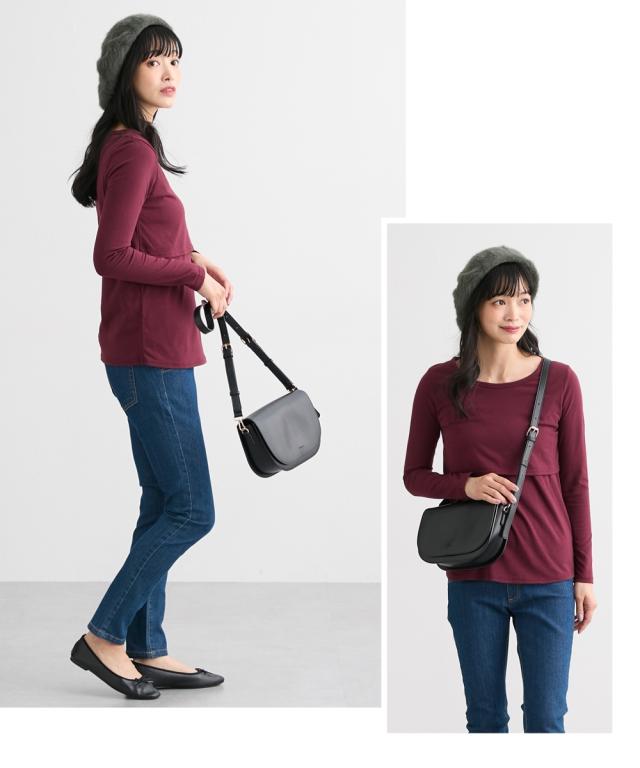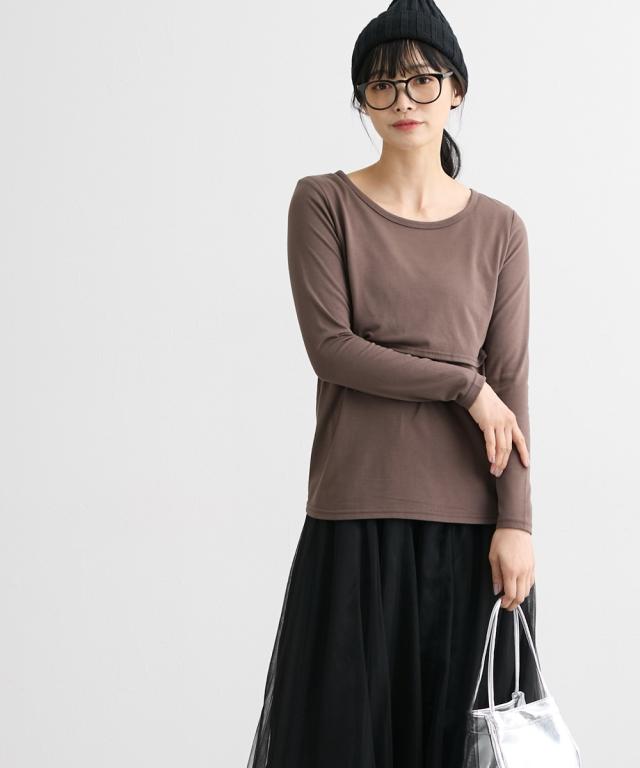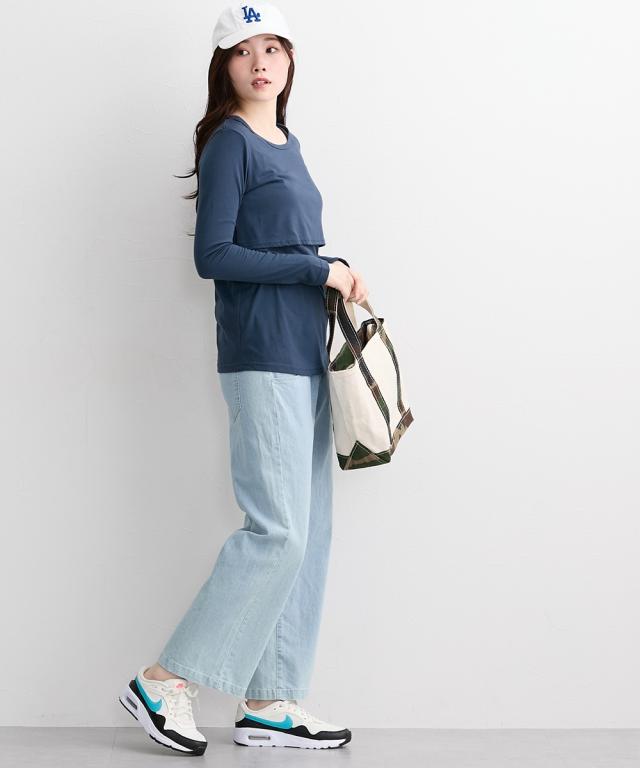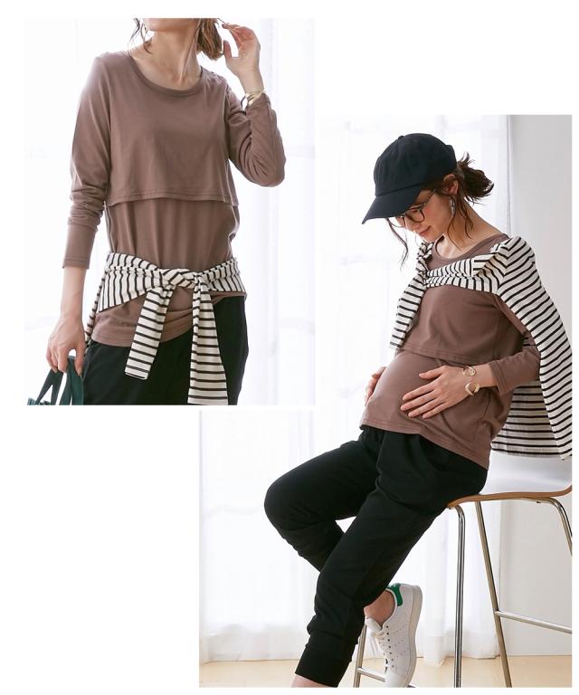 アウターでもインナーとしても着用できる、産前産後に使えるシンプル無地Tシャツです。