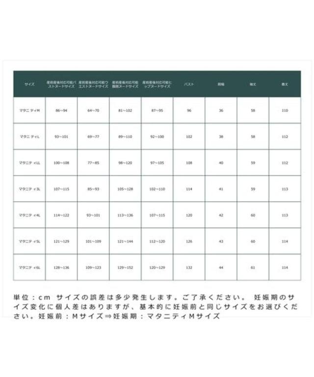 品質=身生地:ポリエステル65%・綿35%(カットソー) 前ボタン開き 授乳機能付 ポケット:前2 ウエスト部分はひもで調節できます。 柄の出方が多少異なる場合があります。 原産国:中国製 備考:単位:cm ※サイズの誤差は多少発生します。ご了承ください。 ※妊娠期のサイズ変化に個人差はありますが、基本的に妊娠前と同じサイズをお選びください。 妊娠前:Mサイズ⇒妊娠期:マタニティMサイズ