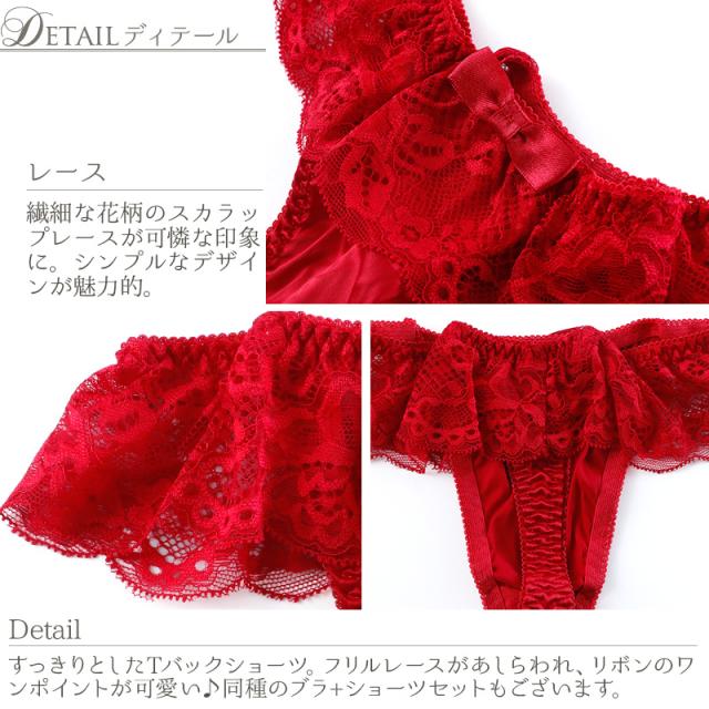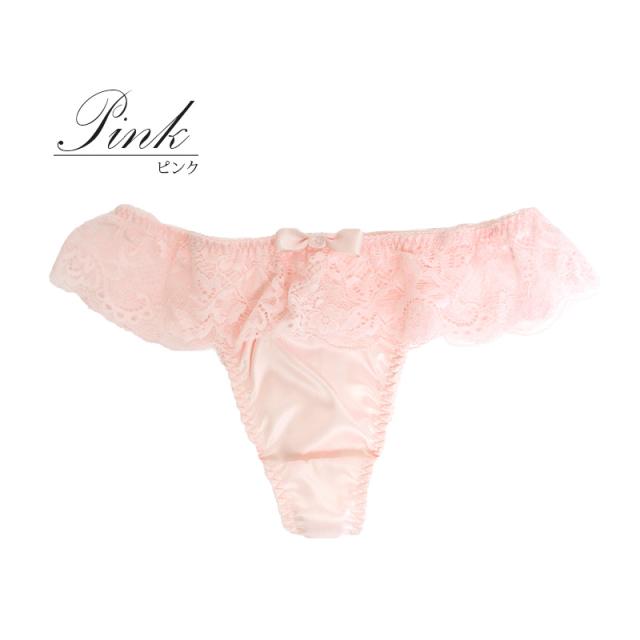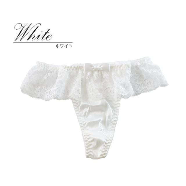すっきりとしたTバックショーツ。フリルレースがあしらわれ、リボンのワンポイントが可愛い♪