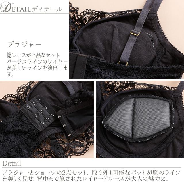 409201768 【2点セット】インナー レディース ランジェリー 下着 総レース 肌着 かわいい 女性 バストアップ ショーツ パンツ tバック パンティー パンティ ブラジャー ブラ 下着セット ブラショーツ セット レース バストキープ 美乳 脇肉 ブラジャー&ショーツ M L LL 大人