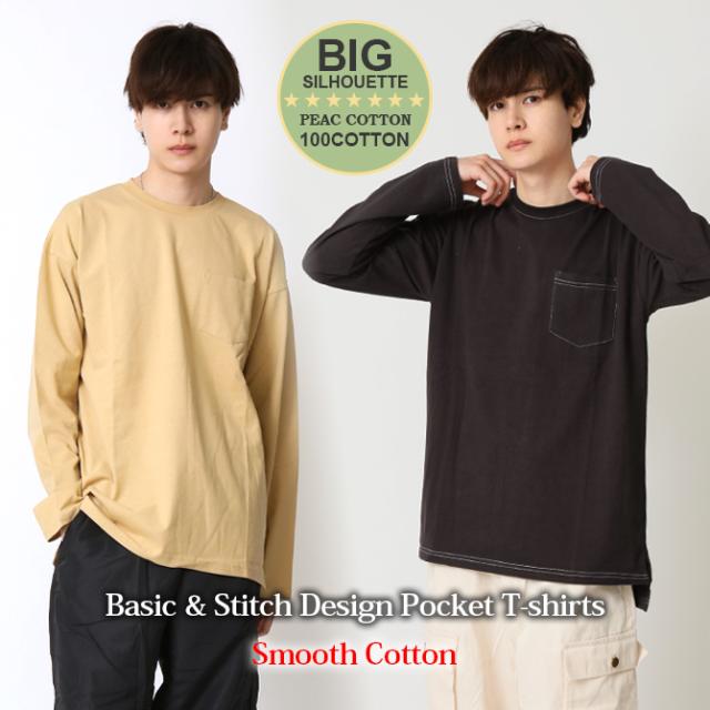 送料無料 Tシャツ メンズ 秋新作 長袖 ピーチ天竺 中肉 ビッグtシャツ ポケット付き 長袖Tシャツ ロンT 無地 オーバーサイズ tシャツ カットソー コットン 綿100% 上質 アメカジ おしゃれ 白 黒 ネイビー ティーシャツ