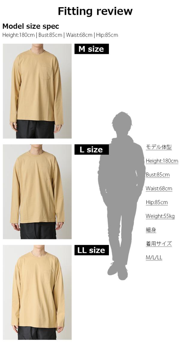 モデル着用Lサイズ:身長:180 / 胸囲:85 / 腰回り:68 / ヒップ:85