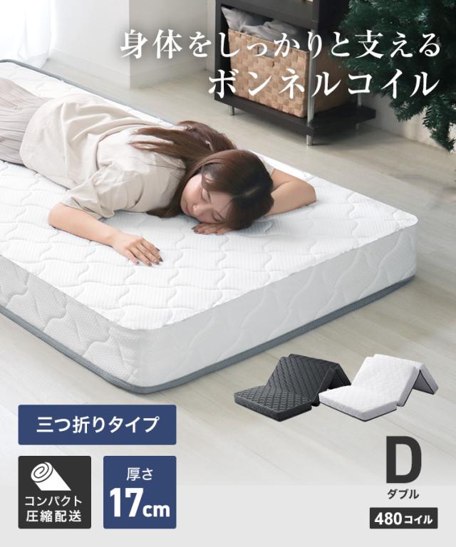 マットレス ダブル 三つ折り ボンネルコイル マット 極厚 17cm 硬め ボンネルコイルマットレス スプリングマットレス コイル 通気性 ボンネルマット マット 圧縮 コイルマットレス ベッドマットレス 腰痛 肩こり 固め 固い 新生活 送料無料