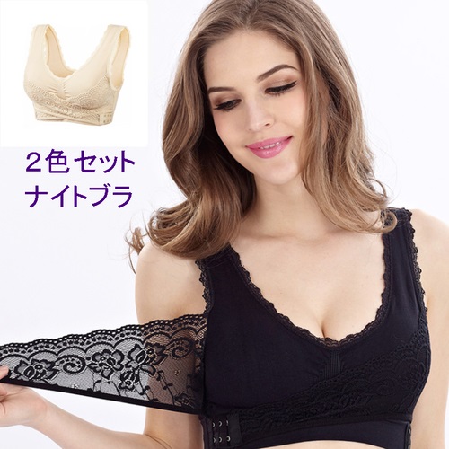 黒 と ベージュ の2枚セットで コスパも良し!夜用ブラジャー としてはもちろん、休日のリラックスタイムにも最適です。