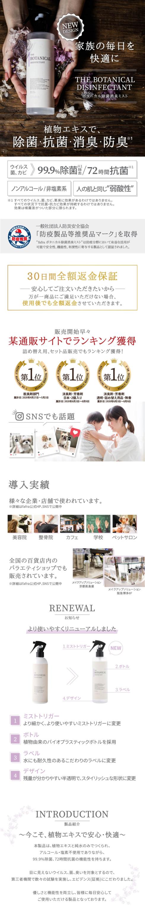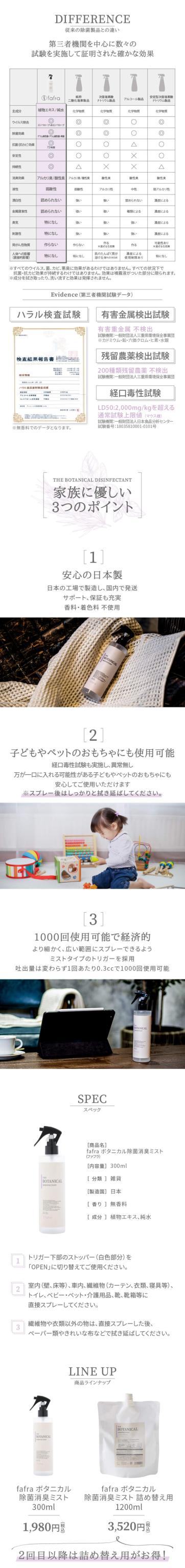 植物エキス 99.9%除菌 72時間抗菌 除菌スプレー【fafraボタニカル除菌消臭スプレー(300ml)】日本製 ノンアルコール 弱酸性 ウイルス 菌 カビ インフルエンザ 対策 服 キッチン ペット 子ども 赤ちゃん マスク 加湿器 ファフラ