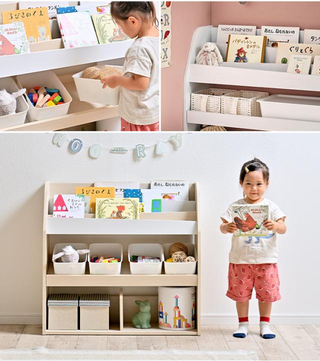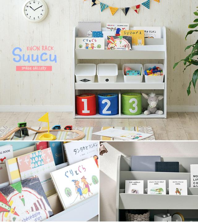 絵本ラック 絵本棚 おもちゃ 収納 おもちゃ収納 おもちゃ箱 本棚 幅83cm ブックラック ブックシェルフ キッズラック 入れ スリム コンパクト おしゃれ 木製 子供部屋 Suucu(スーク) 5色対応