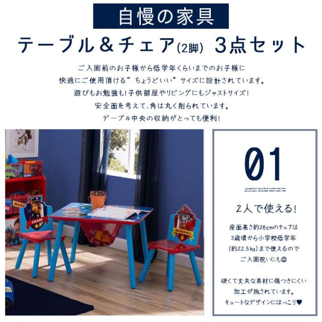 デルタ パウ・パトロール テーブル&チェア パウパトロール 収納付き 子供家具 学習机 椅子 3点セット Delta