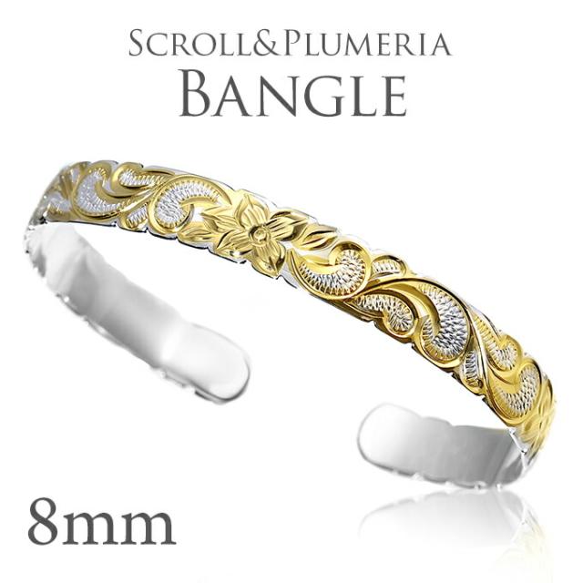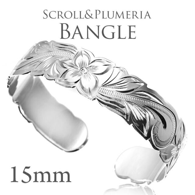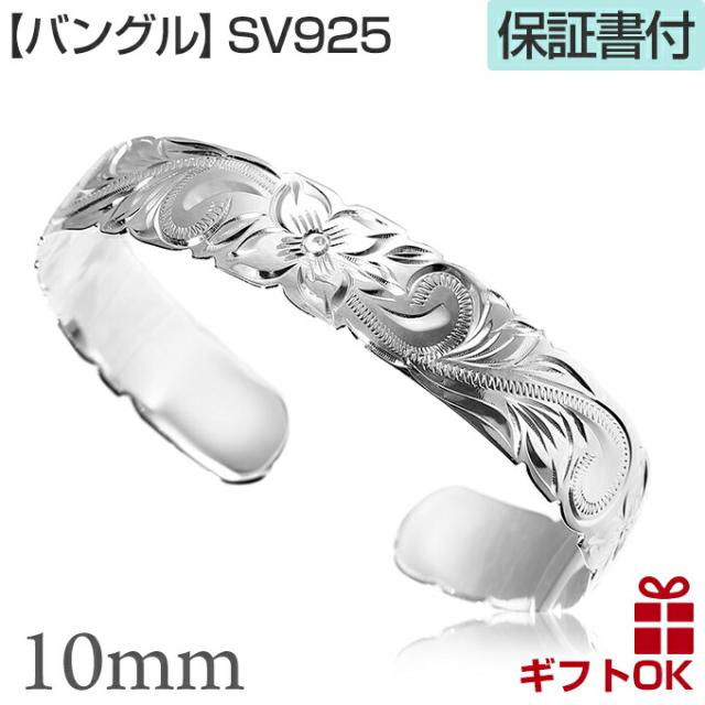 ハワイアンジュエリー バングル カーフ オープン シルバー925 幅10ミリ フリーサイズ プルメリア 花 レイ 花輪 波 スクロール カットアウト メンズ レディース 太め ハワジュ 送料無料 カップル ギフト モアナ lmaハワイ 金属アレルギー