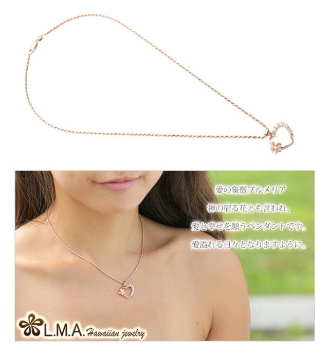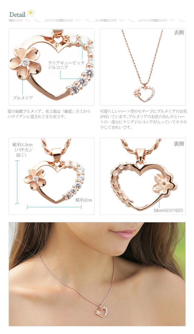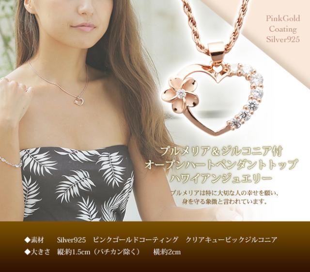 ハワイアンジュエリー ネックレス クーポン有 チェーン付 ペンダントトップ ヘッド シルバー925 ジルコニア ピンクゴールド 加工 ハート オープンハート プルメリア 花 波 レディース プレゼント ギフト 誕生日 記念日 ポイント消化 送料無料 おしゃれ 人気