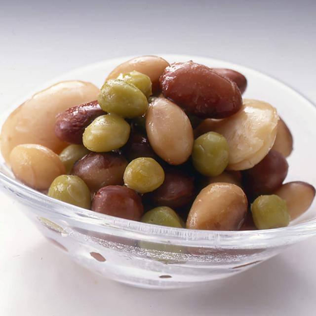 『煮豆みっくす』は、使い勝手のよいパック入りの煮豆です。北海道産の金時豆、白花豆、とら豆、うぐいす豆をミックスし、それぞれの豆の風味を大切にし、ふっくら炊き上げました。京懐石の味を毎日の食卓の一皿にぜひどうぞ。