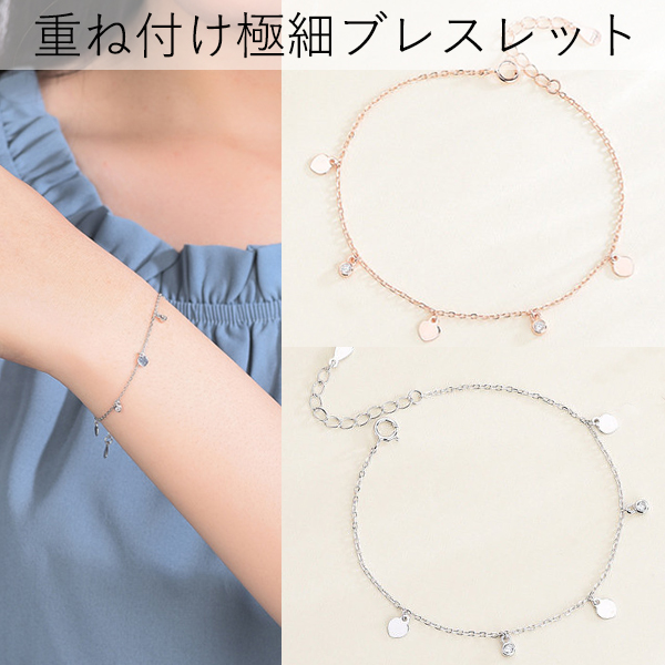 ブレスレット レディース ハート 極細 チェーンブレスレット 重ね付け 大人可愛い シルバー925 プラチナ仕上げ 女性 人気 誕生日プレゼント