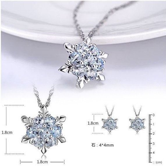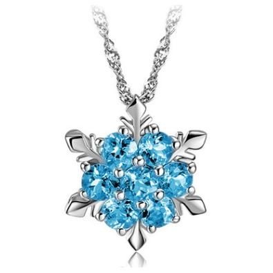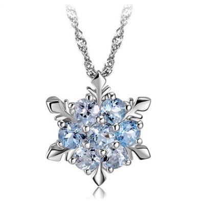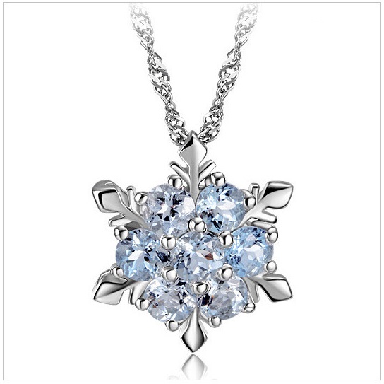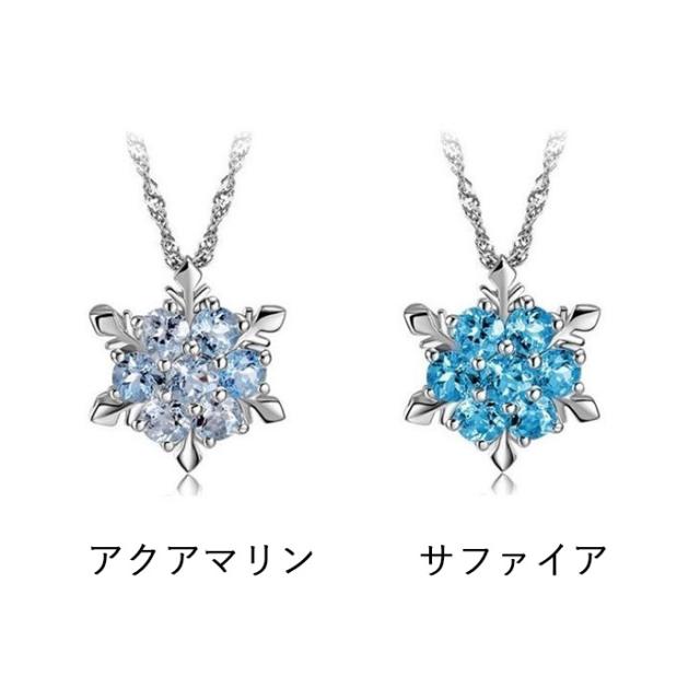 ネックレス レディース アクアマリン 雪華 結晶 ラッキーモチーフ SILVER925 プラチナ仕上げ 人気 誕生日 クリスマスプレゼント
