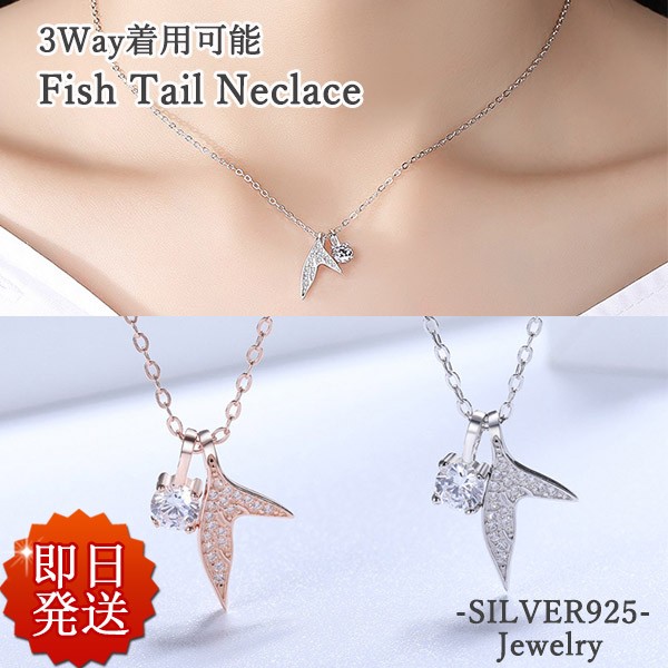 ネックレス レディース 一粒 3WAY 豪華20粒 魚尾ネックレス マーメイドテール 華奢 SLIVER925 妻 娘 彼女 誕生日 クリスマス プレゼント 人気