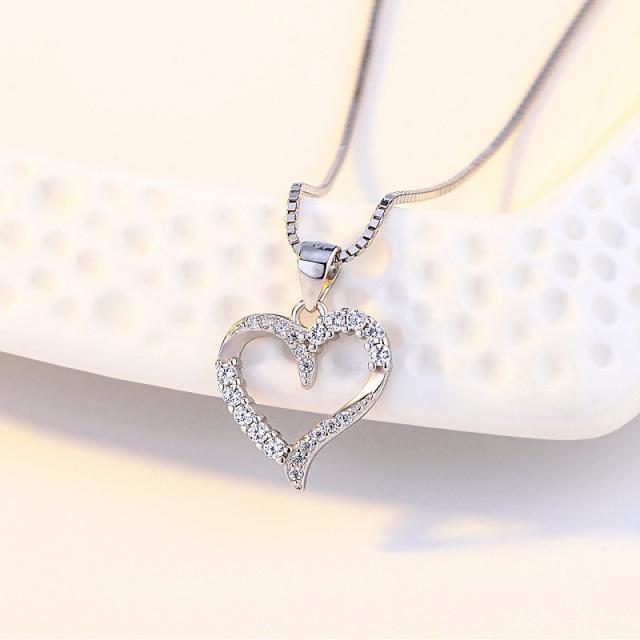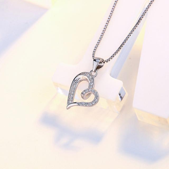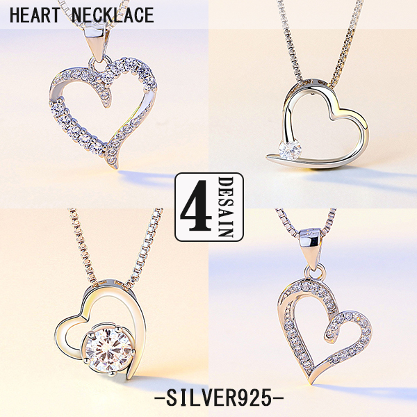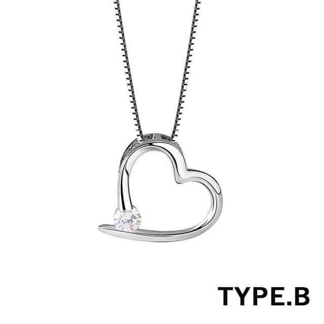 ネックレス レディース ハート シンプル 選べる4種 czダイヤ シルバー925 プラチナ仕上げ 彼女 妻 娘 誕生日 プレゼント 記念日