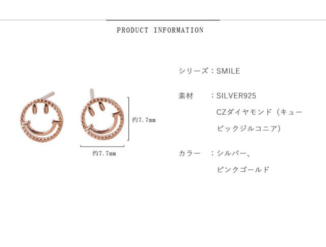ピアス レディース スマイル リング シルバー ピンクゴールド SILVER925 プラチナ仕上げ 娘 彼女 人気 誕生日 クリスマス プレゼント