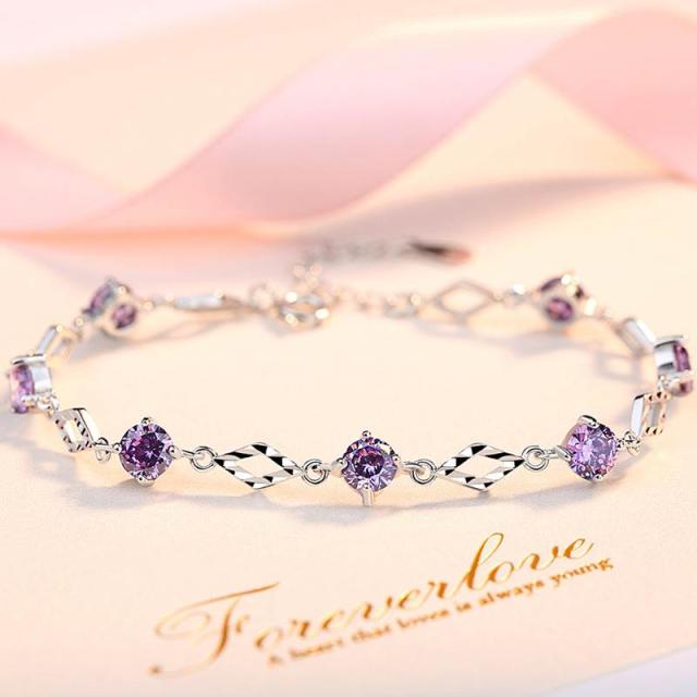 ブレスレット レディース ダイヤ ホワイト パープル 豪華6粒 プラチナコーティング シルバー925 ギフト 人気 誕生日プレゼント ギフト
