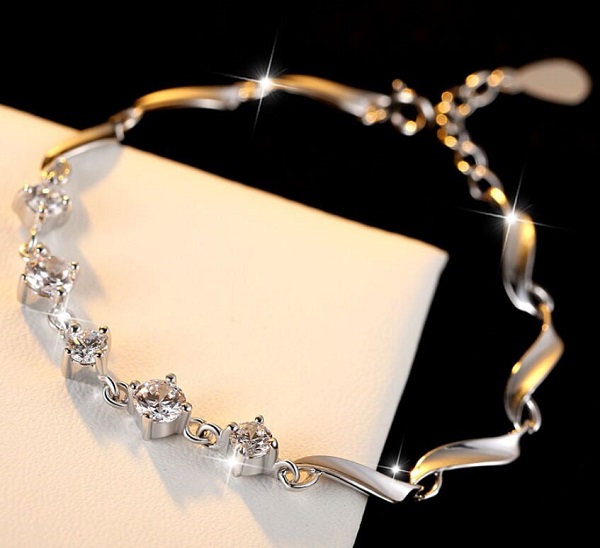 ブレスレット レディース ダイヤ 豪華5粒 プラチナコーティング シルバー925 重ね付け ギフト 人気 女性 妻 彼女 誕生日プレゼント