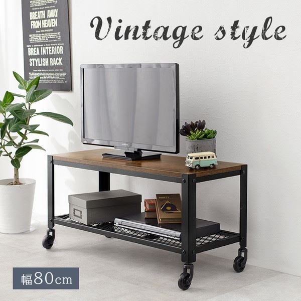 テレビ台 ローボード TV台 幅80cm 32型まで対応 ヴィンテージ調 男前家具 キャスター付き