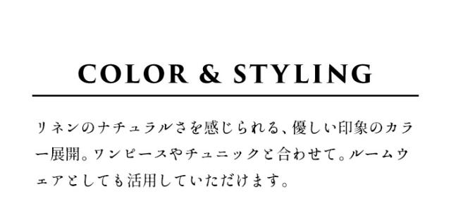 特徴 レギンス感覚でワンピースやチュニックに合わせて履く、リネン100%のペチパンツ。風通しのよいリネンで、ゆったりしたシルエットだから、レギンスより涼しく、暑い季節のインナーとして◎柔らかな生地感のリネンなので、ルームウェアとしても快適でリラックスできます。