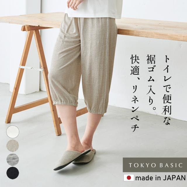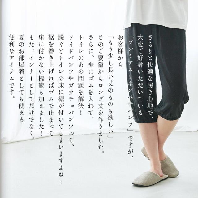 プレミアムリネン100% 裾ゴム入り ロングぺチパンツ / 日本製 ペチパンツ ロング ガウチョパンツ トイレ 裾ゴム タップパンツ 天然素材 吸湿 速乾 抗菌 麻100 トイレで便利 下着 インナー ベージュ 生成り ブラック 黒 グレー ホワイト M L LL 大きいサイズ
