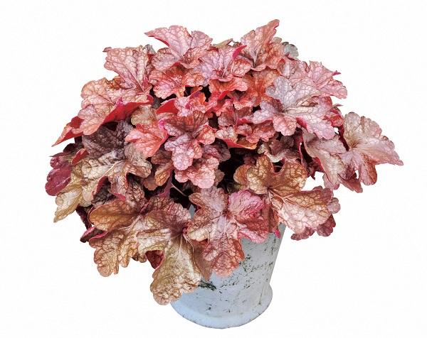 夏の暑さ、直射日光に強い品種です。 照り葉で温度が高い時期はライムグリーン、温度が低い時期はグロス感の強いメープルブラウンになります。 ドルチェシリーズはプルーブンウィナーズ(Proven Winners)ブランドです。 一般的なヒューケラは日陰や寒い環境を好みますが、ヒューケラドルチェは、日陰や寒い環境はもちろん直射日光や暑い環境でも育つ品種のみを厳しく選抜しました。ですから、ヒューケラドルチェはすべての環境で育ちます。 |