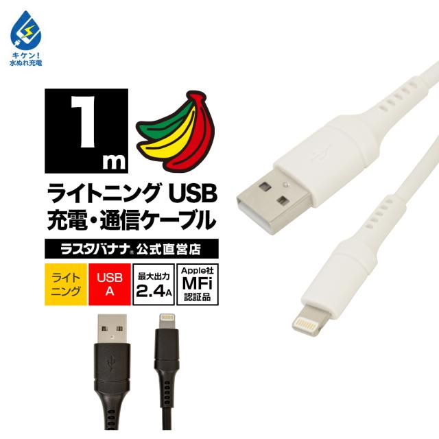 【送料無料】ラスタバナナ iPhone iPod iPad MFi認証 2.4A ライトニング USB 充電・通信ケーブル Lightning USB-A 1m R10CAAL2A05BK R10CAAL2A05WH