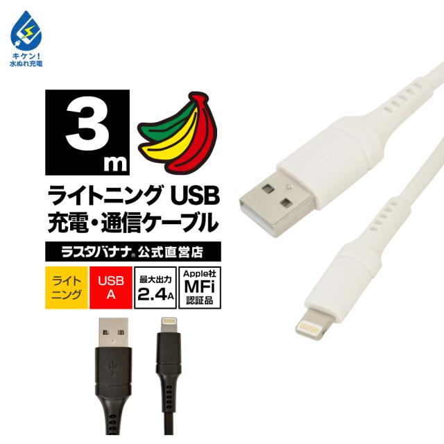 【ネコポス便不可】ラスタバナナ iPhone iPod iPad MFi認証 2.4A ライトニング USB 充電・通信ケーブル Lightning USB-A 3m R30CAAL2A01BK R30CAAL2A01WH