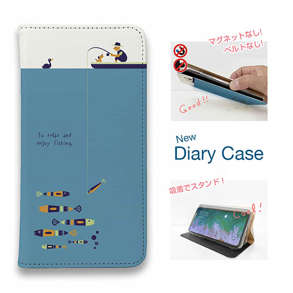 スマホケース 手帳型 ベルトなし iPhone17 Pro Max iPhone Air iPhone16e Pro Max 16 Plus 15 Pro Max 14 Plus Xperia 10 VII Galaxy AQUOS Pixel10 Pro XL 釣り 魚 ルアー 釣りざんまい のんびりと釣りを楽しむ
