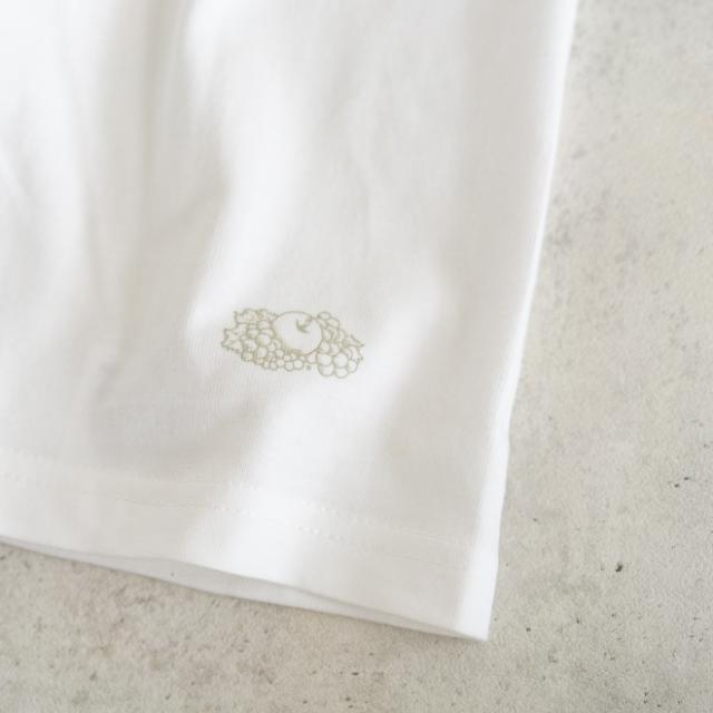左裾にさりげなくフルーツオブザルームでお馴染みの、果実のロゴがプリントされています。