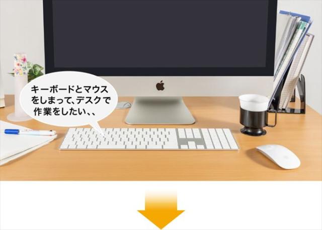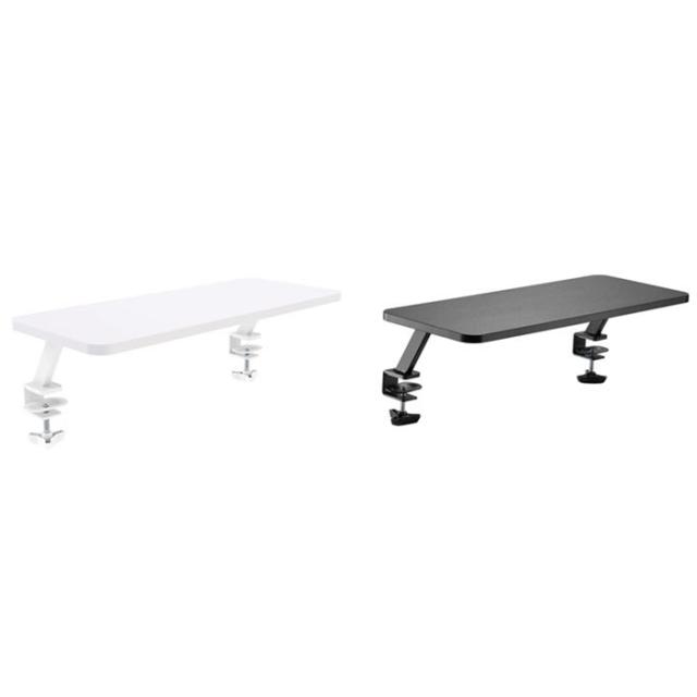 キーボードやマウスを収納できるデスクスタンド。2つのクランプでしっかりと机に固定できるクランプ式デスクスタンドです。デスクスタンド上には、20kg以下のディスプレイやテレビ、小物など置くことができ、デスクスタンド下は大きく開いているので、マウスやキーボードなどを置く事ができます。机の上で大きなスペースを取るディスプレイを台上に置くことで机を広く使うことができ、クランプでしっかり固定するので転倒のおそれがありません。欧州の環境基準であるRoHS指令に準拠した、環境にやさしい製品です。カラーバリエーションは、ブラック(JAN:4511677121791/品番:GH-DKBE1-BK)、ホワイト(JAN:4511677121807/品番:GH-DKBE1-WH)です。