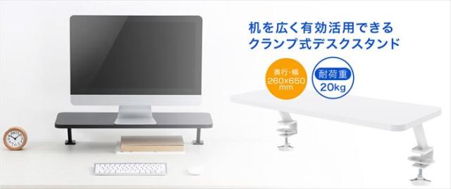 台 スタンド ディスプレイ台 PC台 パソコン台 ディスプレイスタンド PCスタンド パソコンスタンド クランプ式 卓上 デスク デスクスタンド テレビ対応 テレビ台 テレビスタンド 会社 オフィス テレワーク 耐荷重20kg シンプル 便利 黒 ブラック black 白 ホワイト white