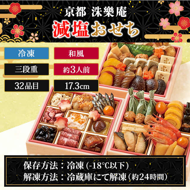 【ポイント増量中】 2024 おせち 京都 洙樂庵 減塩おせち 三段重 約3人前 32品目 Q41-1W 12月30日までにお届け / しゅらくあん 冷凍 お節 御節 新年 お祝い