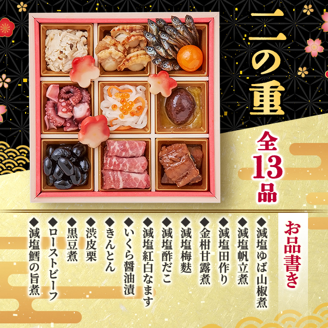 ・京都「洙樂庵」監修の、見た目も華やかな減塩おせちです。