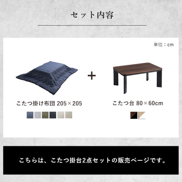 | こたつ掛布団:約205×205cm (キルティング加工許容範囲 +5%−3%) こたつ台:80×60×37cm |